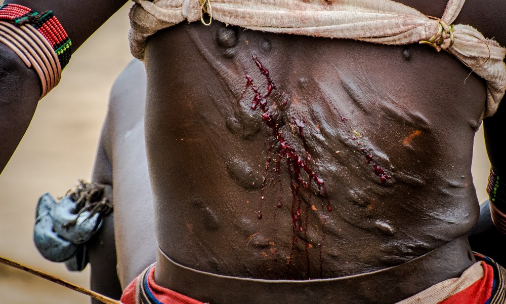 Sono le prime a radunarsi nel luogo della cerimonia, il letto di un fiume in secca. Il sole è ancora alto, quello del primo pomeriggio. Arrivano anche dai villaggi intorno, spesso dopo giorni di cammino. Si sono preparate al meglio: hanno impastato le acconciature con terra rossa e burro, indossato le gonne di pelle più decorate e arrotolato le magliette fino a scoprire la schiena. È festa per le donne Hamer: nel giorno in cui un ragazzo diventerà adulto camminando sul dorso dei tori, anche loro dimostreranno quanto valgono facendosi frustare.
